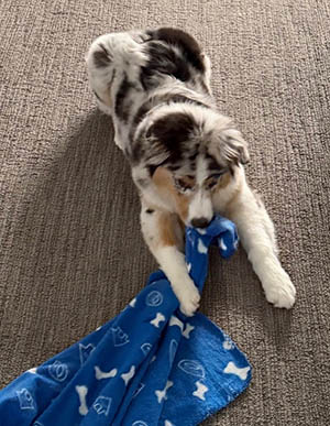 “wiggle butt.”He runs the house and loves playing with his two brothers,