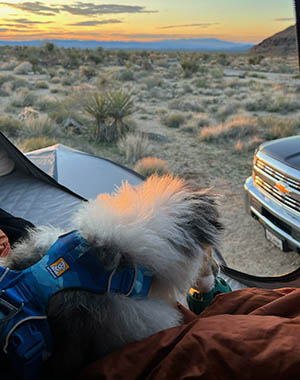 Wrangler looks filthy because we were at our favorite Sniffspot (private dog
