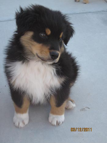 The two black tri girls from Bella and Feathers litters had their first “show outing” at the Joshua Tree’s show in Palmdale. It was only puppy sweeps for them, but they enjoyed their day and got to be “out and about”. They both have such marvelous temperaments. They were in two puppy classes, in one Bella’s pup was first and Feather’s pup was second (out of only three). They are learning to stand and be good for grooming and overall were very nicely mannered the whole time. Feather’s girl is a “chunky monkey” but I really love her. Her coat will be very full it seems, had a little trouble grooming her coat down with all the puppy fuzz. She is always so happy and really seems to like all the kids that came up to pet her. She was a little grouchy with a couple of the other dogs so we are working on that. Bella’s girl is turning into quite the beauty. Her coat is so naturally black and she moves like a dream, just floats along. She just sat and took everything in. My daughter just loves her and I am so glad you talked me into the other pup as she seems to have taken over my first puppy.