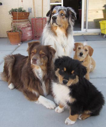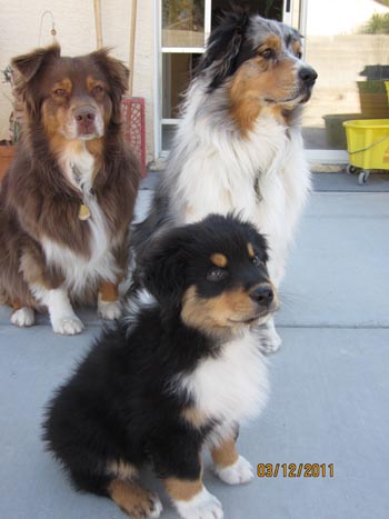 I can’t believe three years have passed without us sending you an update on Kona... She continues to shine! She’s still very attentive and very eager to please. She has become a fabulous member of the family. She really enjoys playing soccer in the park these days. About 9 months ago we rescued a mini Aussie that looks so much like Kona we sometimes call her Mini-Me =) Kona has been so great at helping this rescue learn to trust people it’s been really great to watch and we really believe Kona has helped save this little dog. I’ve attached a photo of Kona by herself as well as one with her and Zoey. We’ll be keeping an eye on your litters (as always) and we’re considering another Aussie in three years. Hard to believe Kona will be 5 this December! She’s been such a blessing to our family and again, we thank you for entrusting her to us. We hope all is well with you.