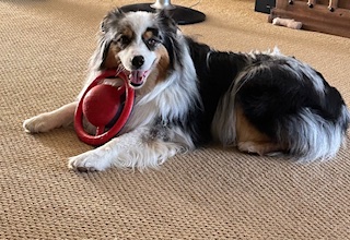 (Jinx x Ransom 2020). He is a JOY. Always wants to participate, loves playing frisbee, is quite the swimmer, and is probably the best all-around dog we’ve ever had. His Aussie crimped wet hair and wiggle butt keep us smiling. You do such a fantastic job with your dogs.Thank you ❤ Shana and Devin